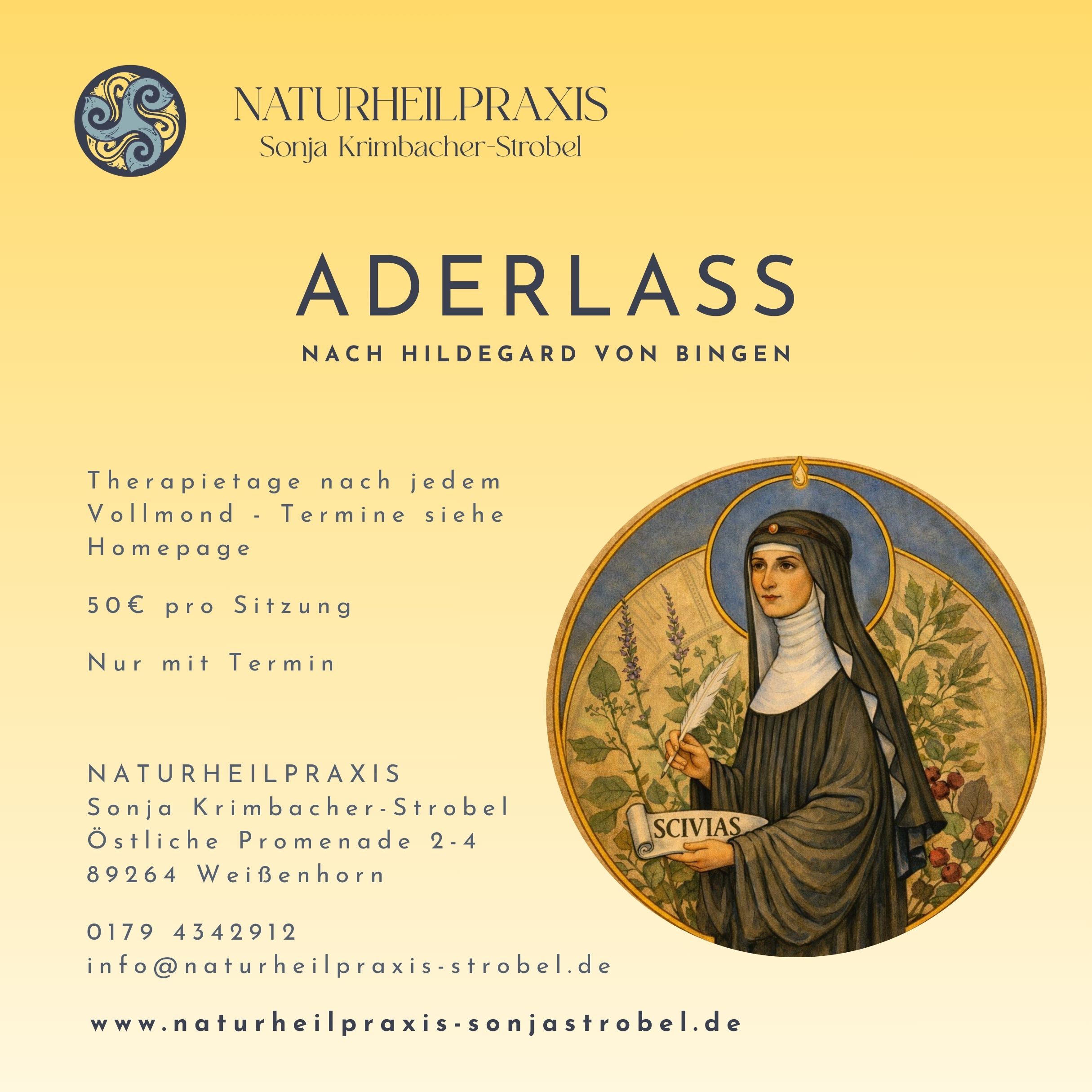 Gerne berate ich Sie persönlich, ob ein Hildegard-Aderlass für Sie geeignet ist.
